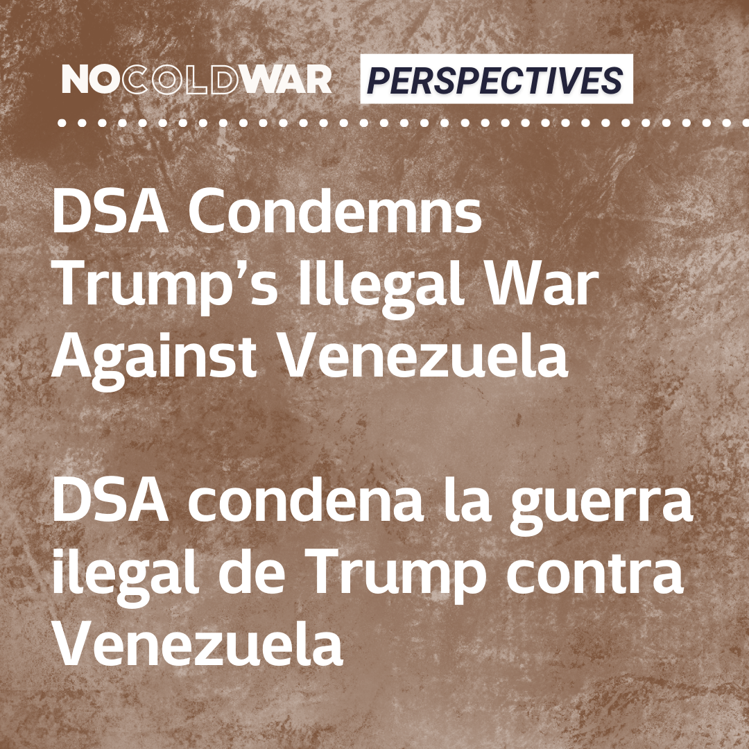 Socialistas Democráticos de Estados Unidos (DSA) hace un llamado al pueblo de Estados Unidos a protestar y resistir esta guerra ilegal y a solidarizarse con el pueblo soberano de Venezuela, participando en las acciones contra la guerra convocadas para el 3 de enero. Además, DSA exhorta a la ciudadanía a contactar a sus representantes en el Congreso para exigir la aprobación de una Resolución sobre los Poderes de Guerra para bloquear la agresión militar de Trump. DSA también anima a sus miembros a organizarse en sus capítulos contra esta guerra y en el Grupo de Trabajo sobre Venezuela del Comité Internacional. Puede encontrar más información sobre Venezuela aquí, en nuestro kit de herramientas sobre Venezuela.